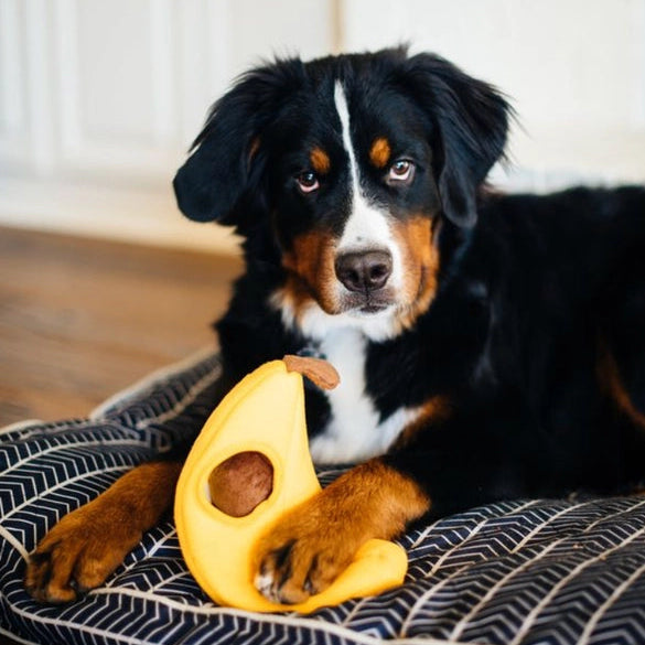Com uma "banana" em tecido macio e três peluches pequenos de macaquinhos com apito, permite esconder treats/biscoitos/ração e desidratados para muitas horas de diversão e estimular o instinto de forragear e o olfato.