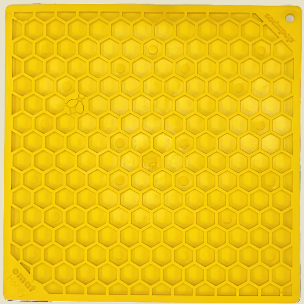 O licking mat Colmeia da Soda Pup 🐝🍯💛(enrichment licking mat/tapete de lamber) vai fazer as delícias dos fãs de enriquecimento ambiental, enquanto promove uma refeição mais lenta e boa digestão.