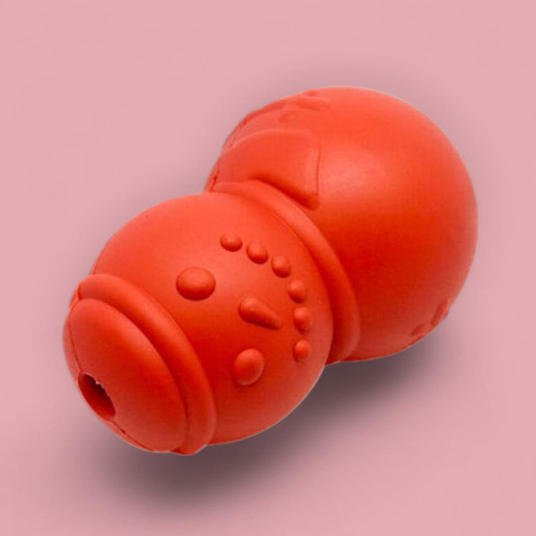 O brinquedo de enriquecimento ambiental para rechear Sweet Snowman ❄❄, da Soda Pup, é feito em material resistente e com um interior oco que pode ser recheado com alimentos húmidos e congelado para uma experiência mais duradoura e saborosa, ou usado para esconder snacks/biscoitos ou bully sticks.