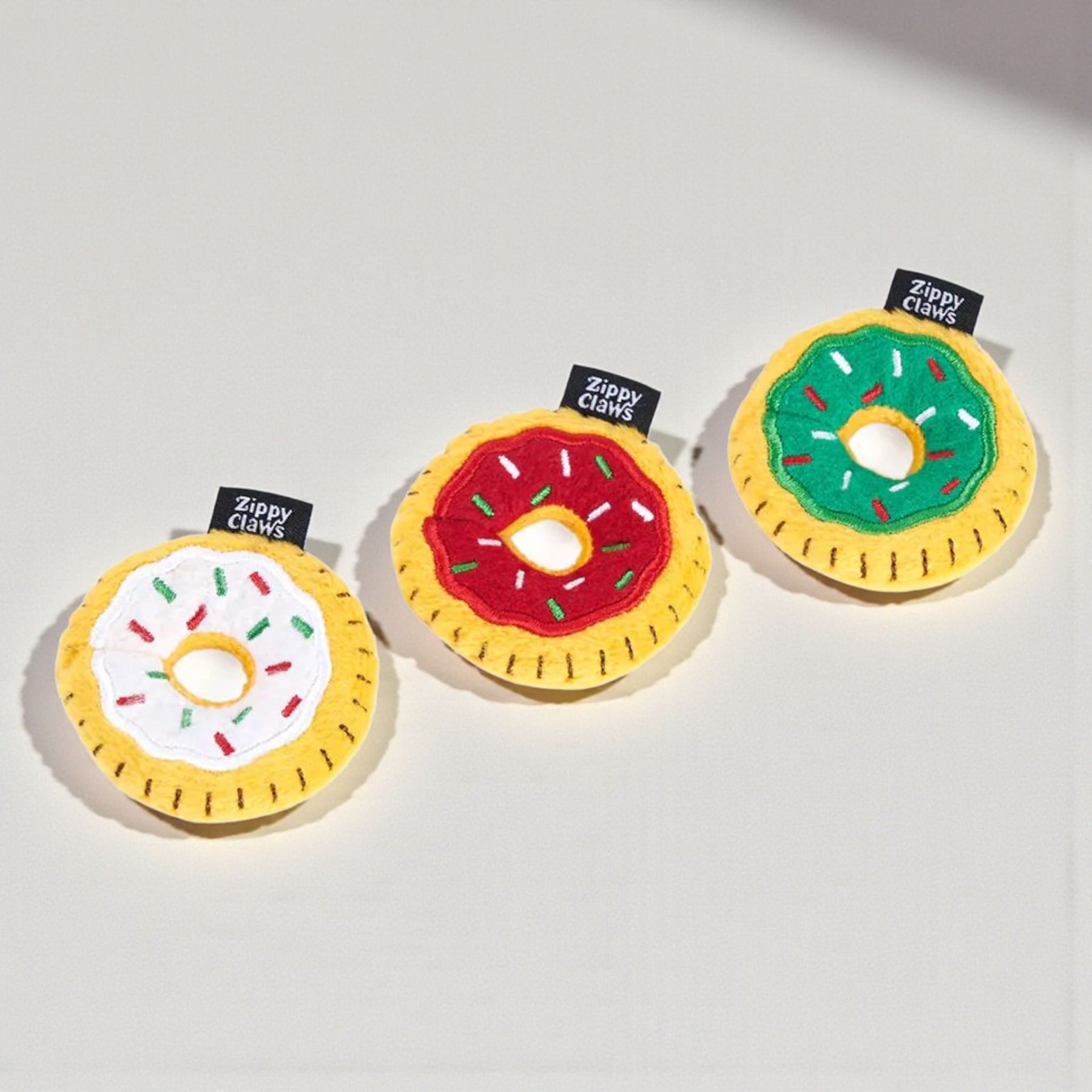 Recheados com catnip (erva-gateira), oeste pack com três mini donuts 🍩em cores festivas 💚💛 Prontos para muita brincadeira, patadas e arranhadelas.